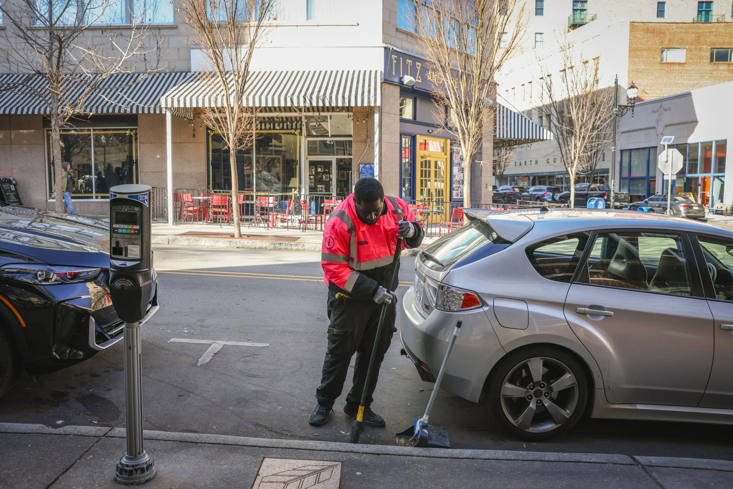 Our Community Ambassadors are the friendly, approachable faces helping make Downtown Asheville cleaner, safer, and more welcoming for everyone. Trained in hospitality, maintenance, and community care, they walk the district daily to provide directions, assist visitors, remove litter, report issues, and connect with those in need. Paid a living wage and trained through local partnerships, our Ambassadors are here to support a vibrant Downtown — one interaction at a time.